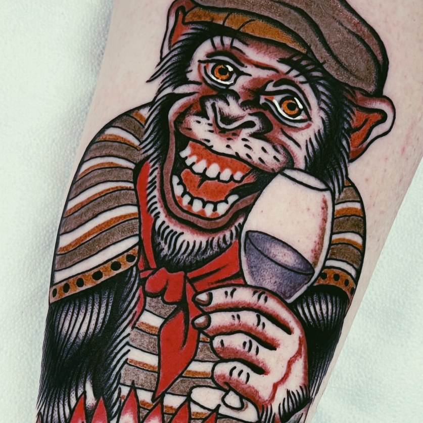 Schau mich an: ein Affe mit einer Baskenmütze, gekleidet wie ein Gentleman, und in der Hand ein Glas Wein. Meine Augen funkeln mit einem Hauch von Schalk, und mein Grinsen verrät, dass ich die Geheimnisse des Lebens kenne – und vielleicht auch die besten Weine. Man könnte meinen, ich sei ein Lebemann, der die kleinen Freuden des Daseins zu schätzen weiß, aber ich bin auch ein Symbol für Freiheit und Unabhängigkeit.